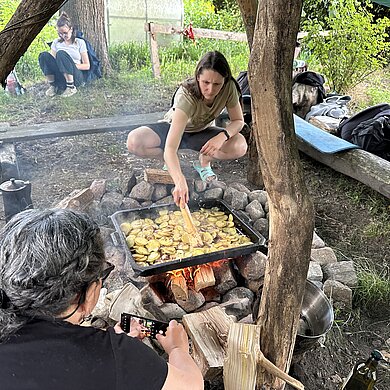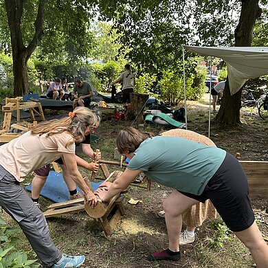 Bei Sonne und Regen wurde geschnitzt, gefilzt, gemalt, gehäkelt, musiziert, geredet, gepaddelt – und vor allem: gelacht und gemeinsam Zeit verbracht. Lehrer*innen und Schüler*innen begegneten sich einmal ganz anders – außerhalb von Klassenzimmern und Stundenplänen, mit Raum für Begegnung, Kreativität und gemeinsames Lernen.